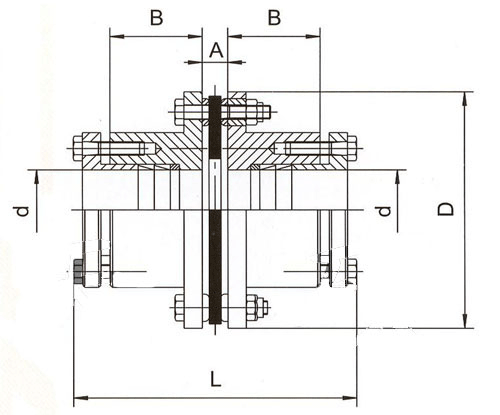規(guī)格 | 孔徑d mm | D mm | L mm | A mm | B mm | 重量 kg | 許用轉(zhuǎn)速 rpm | 公稱扭矩 N.m | 許用補(bǔ)償量 | |