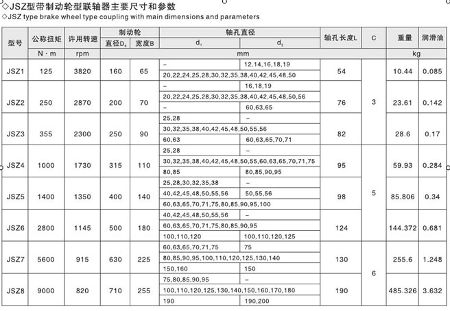 1、JSZ型帶制動輪型聯軸器減振性好,使用壽命長 聯軸器以蛇形彈簧片軸向嵌入兩半36%以上。梯形截面的蛇形彈簧片采用彈簧鋼,經嚴格的熱處理,并特殊加工而成,具有良好的機械性能,從而使聯軸器的使用壽命遠比非金屬彈性元件聯軸器(如彈性套 柱銷,尼龍棒銷聯軸器)大為增長!